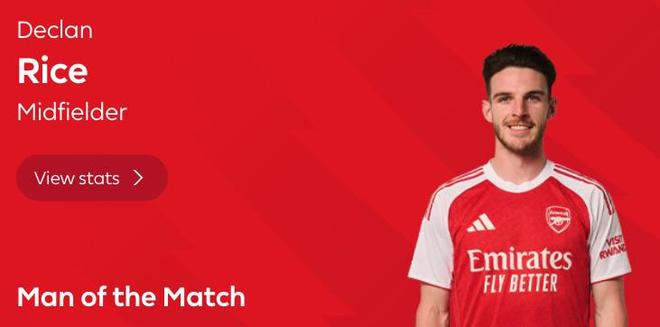 最终经过英超官网球迷投票,赖斯以71%的得票率当选全场最佳球员。